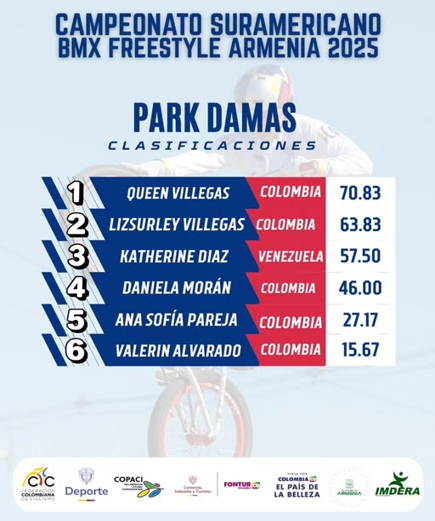 Con esta clasificación, la final femenina promete un nivel excepcional, reuniendo a riders que hoy representan lo mejor del BMX Freestyle suramericano. Armenia se prepara para recibir la última ronda con gran expectativa, mientras la afición aguarda nuevas emociones, más creatividad sobre la bicicleta y un cierre inolvidable en una competencia que ya marca historia en el continente.