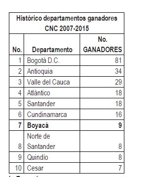 Conozca los 10 departamentos con mayor número de ganadores en la historia del Concurso: