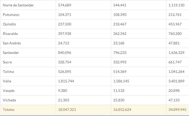 Del total de los ciudadanos habilitados para sufragar, 18.047.321 son mujeres y 16.852.624 hombres, los cuales podrán ejercer su derecho al voto en 81.925 mesas distribuidas en 11.034 puestos de votación en todo el territorio nacional.