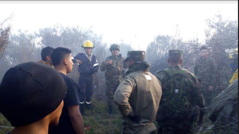 Soldados del Grupo de Caballería N° 1 General Jose Miguel Silva Plazas adscrito a la Primera Brigada de la Segunda División del Ejército Nacional, apoyaron a la comunidad del sector El Olvido en zona rural del municipio de Duitama, donde se registró un incendio forestal que afectó la vegetación de la zona.