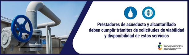 Superservicios, recuerda a las empresas prestadoras de los servicios de acueducto y alcantarillado de Colombia, que deben garantizar la viabilidad y disponibilidad en las áreas del municipio donde prestan sus servicios.