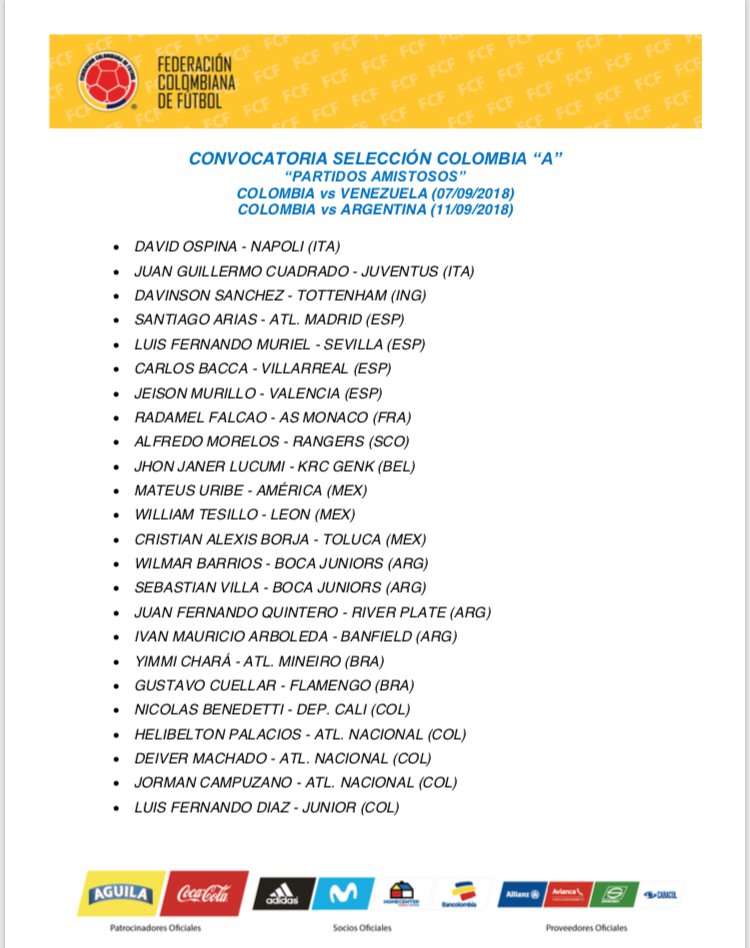 Antes de la salida de Jose Nestor Pekerman el técnico de las divisiones menores Arturo Reyes asumió el cargo de la tricolor, hoy será su primera prueba ante la selección de Venezuela junto a un plantel de 24 convocados liderados por Radamel Falcao Garcia quien se convierte en el jugador más veterano con 34 años para afrontar los amistosos del mes de septiembre que tendrá la tricolor.