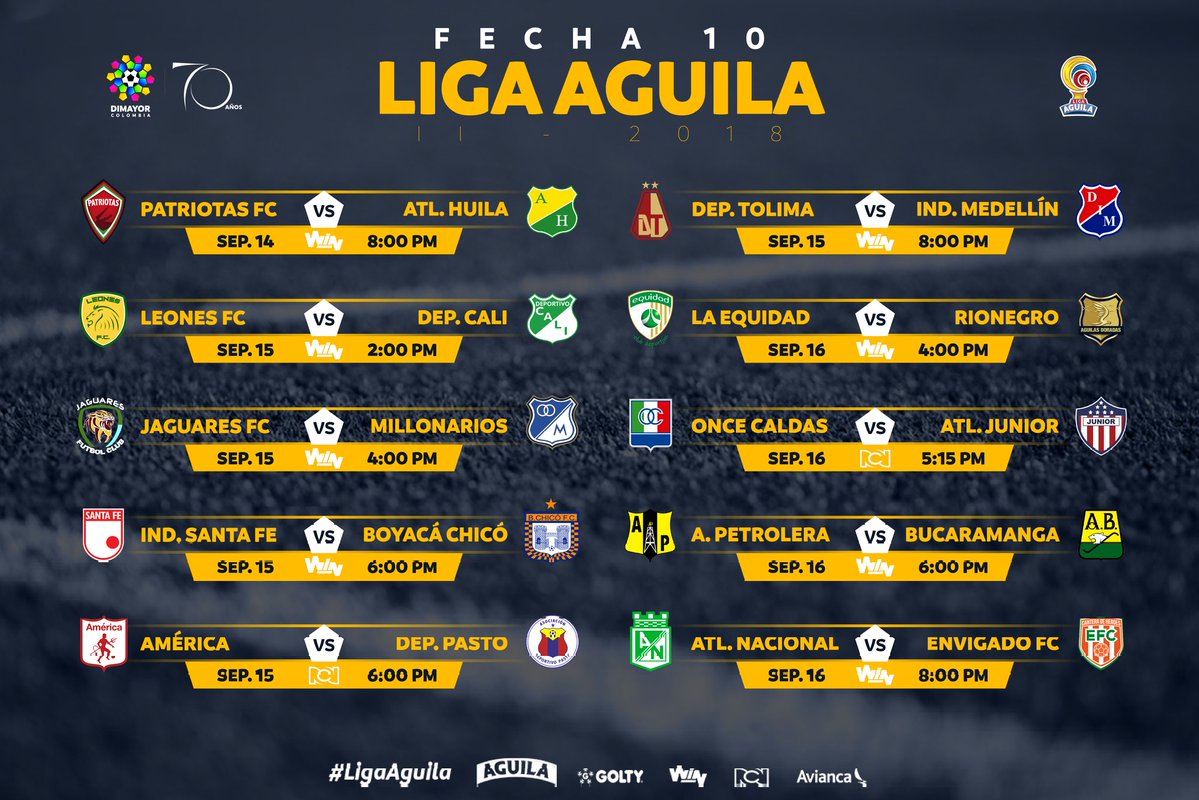 Prográmese para vivir los encuentros del fútbol colombiano la décima fecha se disputara entre el 14 y 15 de septiembre de 2018