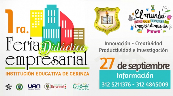La Secretaría de Educación de Boyacá invita a la Primera Feria Didáctica Empresarial Regional en la institución educativa de Cerinza, este 27 de septiembre, a partir de las 7:00 a.m.