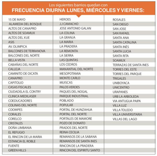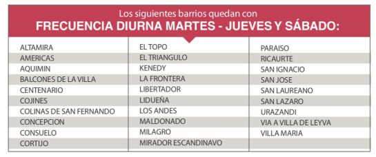 A partir del 01 de Enero de 2019 se modifican fechas y horarios en 113 barrios