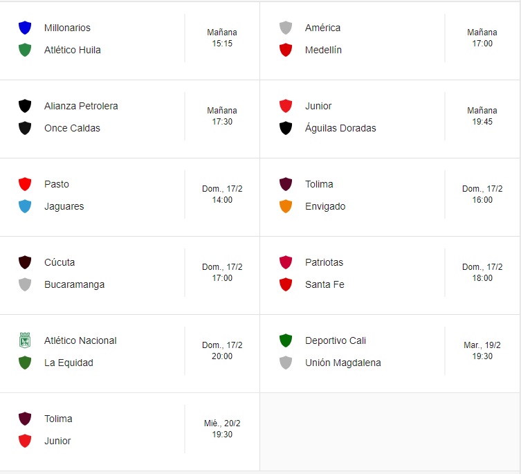 Del 15 al 16 de febrero se disputara una nueva fecha del fútbol profesional colombiano
