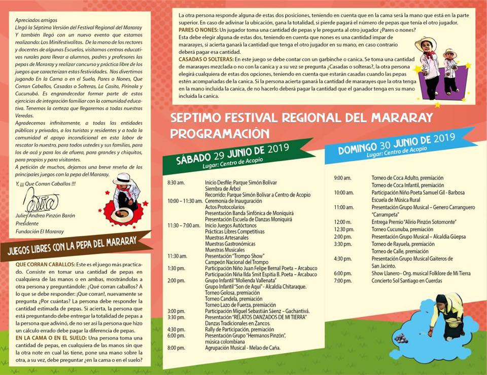 Este fin de semana, durante el 29 y 30 de junio, Moniquirá celebrará el Séptimo Festival Regional del Mararay, en el que los juegos típicos del departamento recobrarán vida.