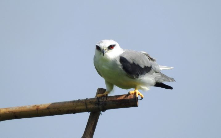 Las aves que ejercen ese control son los elanios. “Es un ave inconfundible, según la describen los zoólogos. Tiene la cabeza blanca con una "máscara" negra, y su parte inferior es blanca excepto las puntas de las afiladas alas, que son negras. La parte superior es gris azulada, con manchas negras en los hombros”.