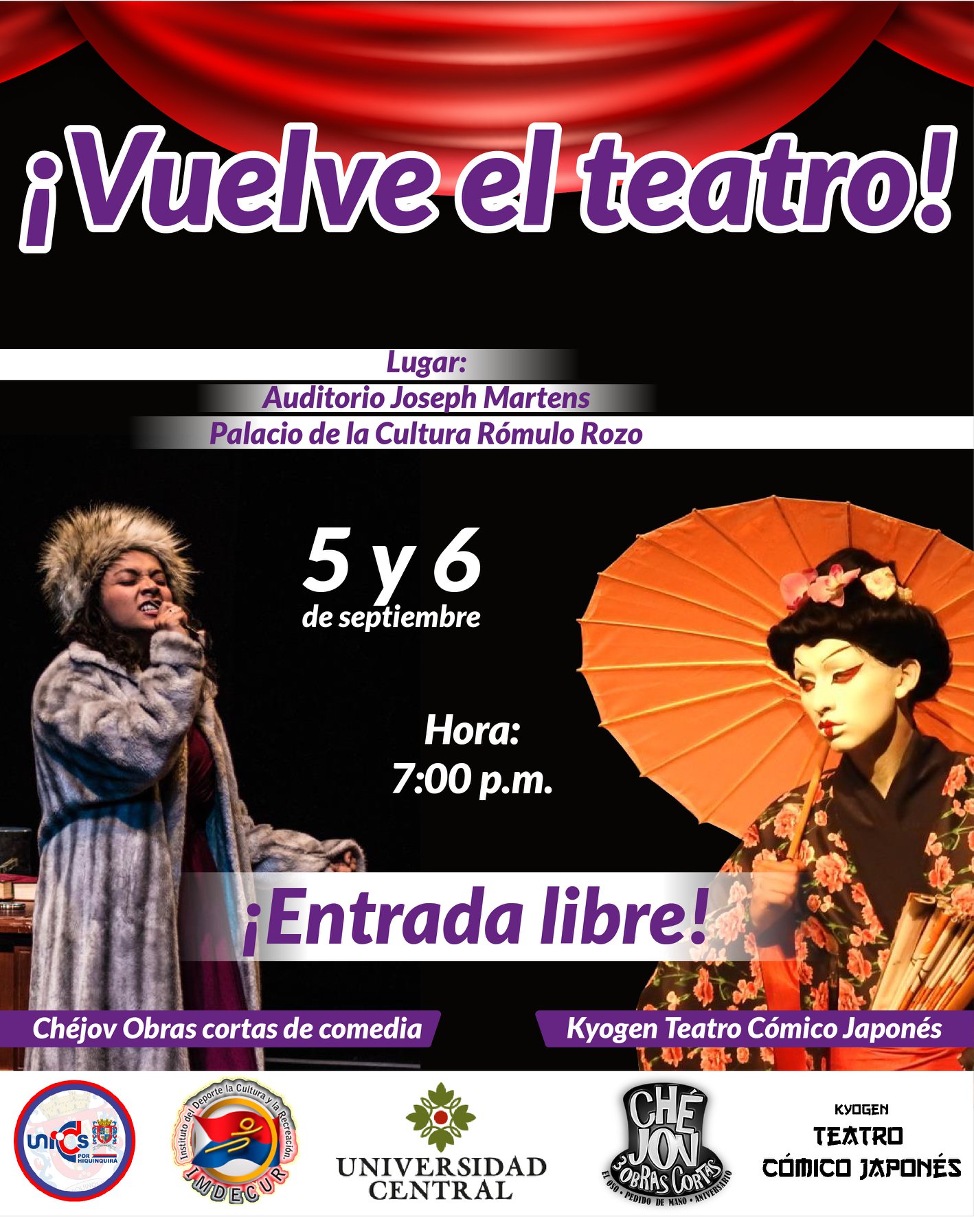 Este 5 y 6 de septiembre a partir de las 7:00 pm en el Auditorio Joseph Martens del Palacio de la Cultura Rómulo Rozo, los chiquinquireños y turistas podrán vivir la presentación de Kyogen Teatro Cómico Japonés y Chéjov, quienes presentarán comedios y teatro con cultura japonesa.
