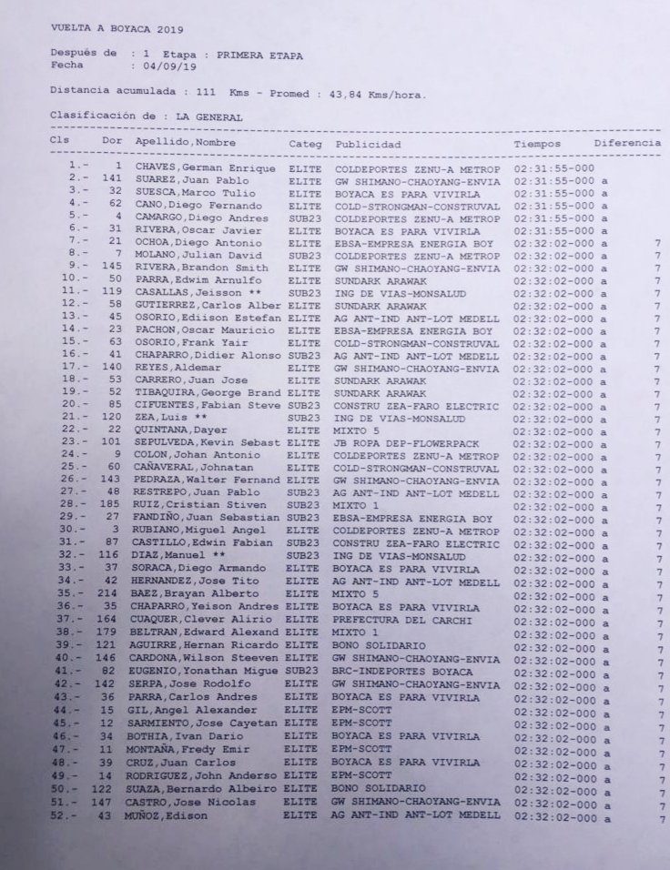 Este miércoles 4 de septiembre se disputó la primera etapa de la Vuelta a Boyacá que reúne a 200 pedalistas del país cafetero junto a una cuota representativa de extranjeros, la competencia en su primera salida tuvo una distancia de 111 kilómetros entre el municipio de Sora y Busbanza.
