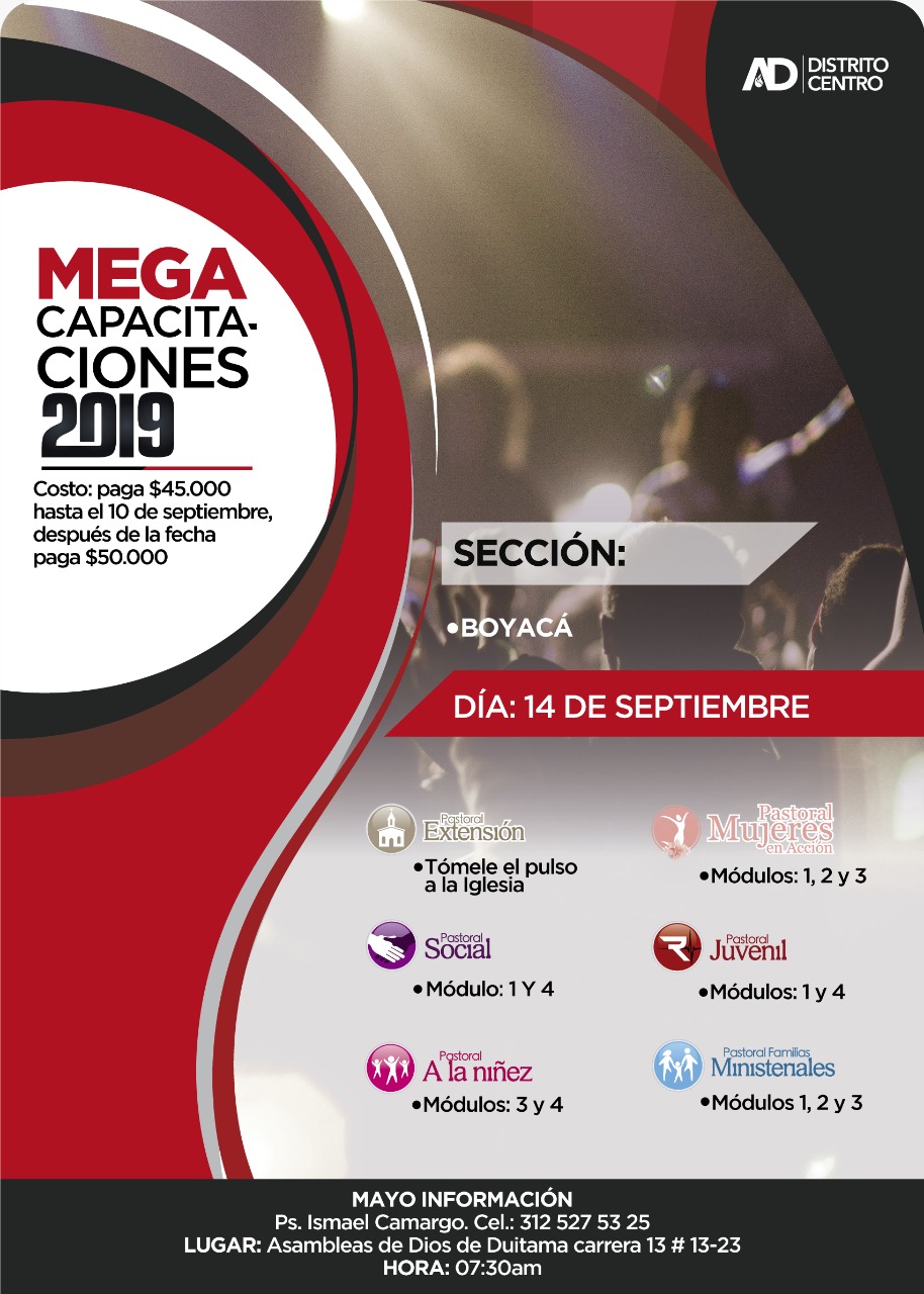 Se trata de la Megacapacitación 2019, un evento que reúne a pastores, líderes de jóvenes, líderes de mujeres, maestros de niños y jóvenes cristianos estudiantes universitarios; con el propósito de crecer en el servicio y trabajo que se lleva a cabo en las iglesias.
