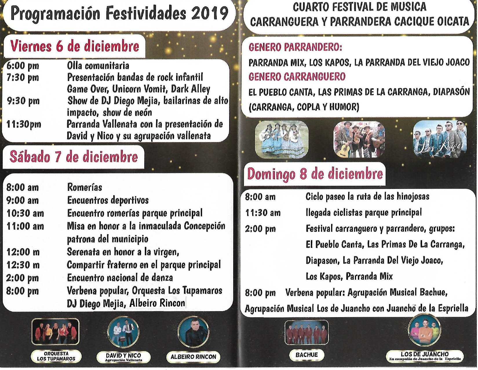 Llega diciembre y con él las Festividades 2019 del municipio de Oicatá que buscan honrar a la Virgen de la Inmaculada Concepción.