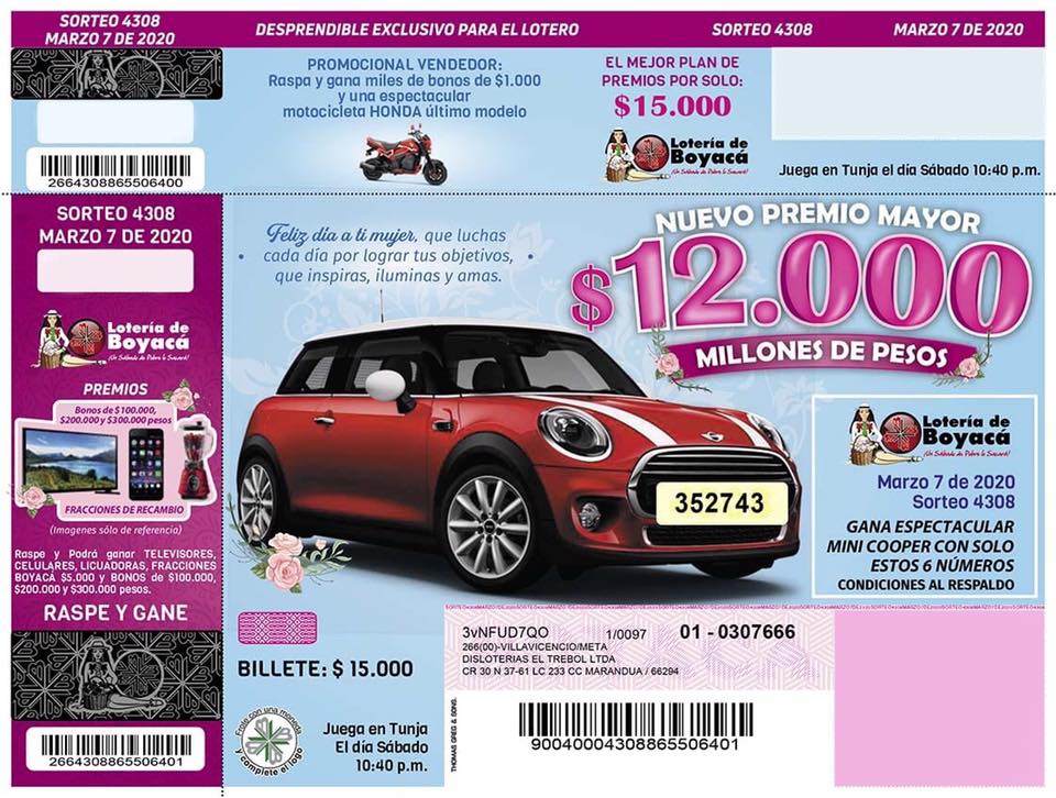Un Mini Cooper, 12.000 millones de pesos y más premios sorteará la Lotería de Boyacá para celebrar a la mujer colombiana.
