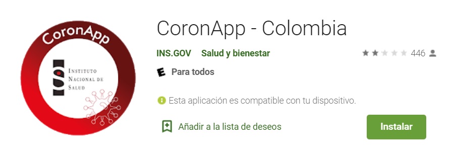 Está disponible una aplicación de descarga gratuita llamada CoronApp – Colombia (habilitada para dispositivos iOS y Android) la cual es promovida a través de mensajes de texto por los operadores y su descarga no afectará el plan de datos de los usuarios. (Este es el link de descarga: http://url.ins.gov.co/0vh1s)