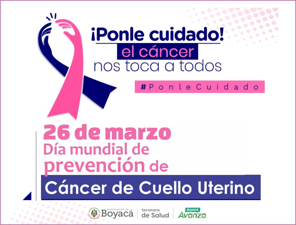 La Secretaría de Salud de Boyacá invita a propiciar acciones de movilización social en torno al control de esta enfermedad, trabajando en conjunto con EAPB, municipios, entes territoriales, ESE, IPS, instituciones educativas y universidades, para disminuir la presencia de casos de cáncer de cuello uterino. ¡Ponle cuidado el cáncer nos toca a todos!