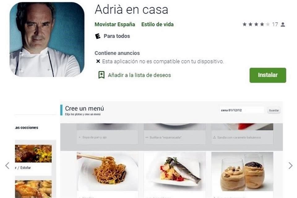Ferran Adrià, en colaboración con Movistar, ha lanzado la app Adrià en casa, una recopilación de 31 menús de tres platos cada uno, basados en lo que comía el staff de elBulli de 18:30 a 19:00, antes de iniciar el servicio en sala.