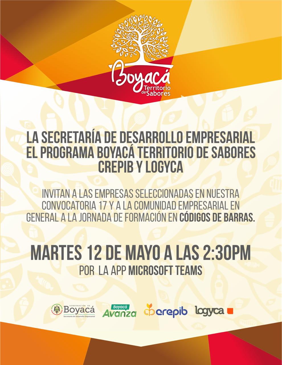 Con el propósito de fortalecer las capacidades empresariales de la industria de alimentos procesados en Boyacá, la Gobernación de Boyacá con su Secretaría de Desarrollo Empresarial realizarán este martes 12 de mayo a partir de las 2:30 p. m., la capacitación en Código de Barras.