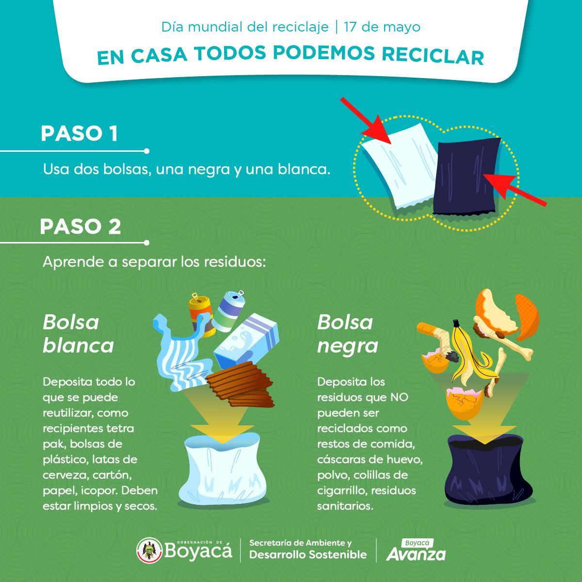 Con motivo de la celebraciópn del Día Mundial del Reciclaje, este 17 de mayo, el secretario de Ambiente y Desarrollo Sostenible de Boyacá, Fabio Guerrero, recordó a los boyacenses la importancia de reciclar utilizando la estrategia de las cinco R: Reducir,Reparar,Recuperar,Reutilizar y Reciclar.