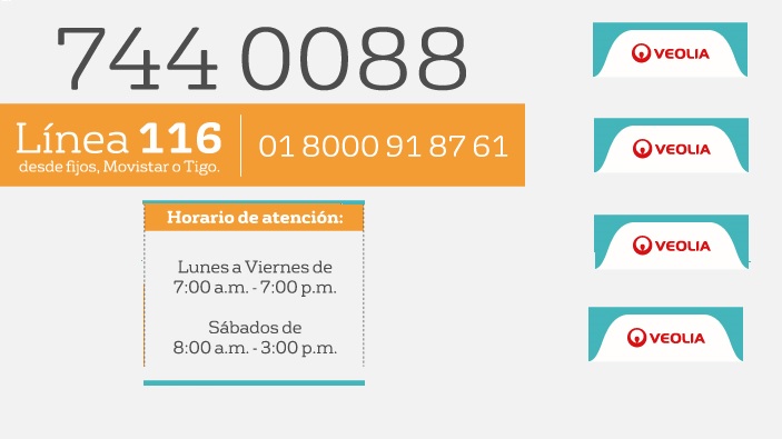 Para servicio al cliente y atención de reclamaciones de manera directa e individual a los uauarios, Veolia informó haber dispuesto de la líneas telefónica 7440088 que funciona de siete de la mañana a siete de la noche, de lunes a sábado, en la que los ciudadanos pueden reclamar por situaciones que consideran irregulares.