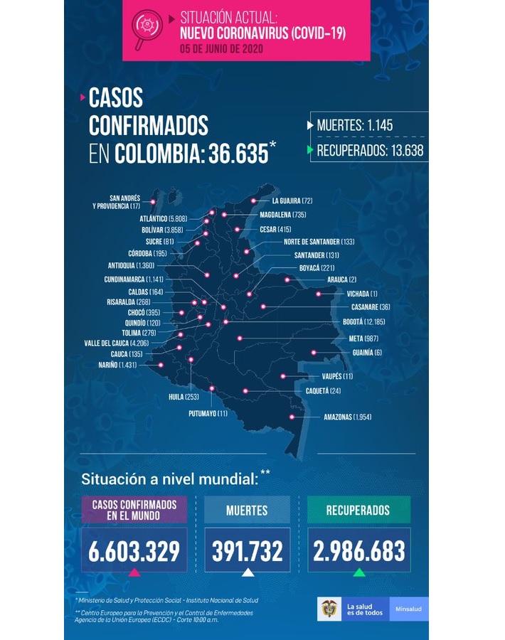 Para este 5 de junio, confirmamos en Colombia: