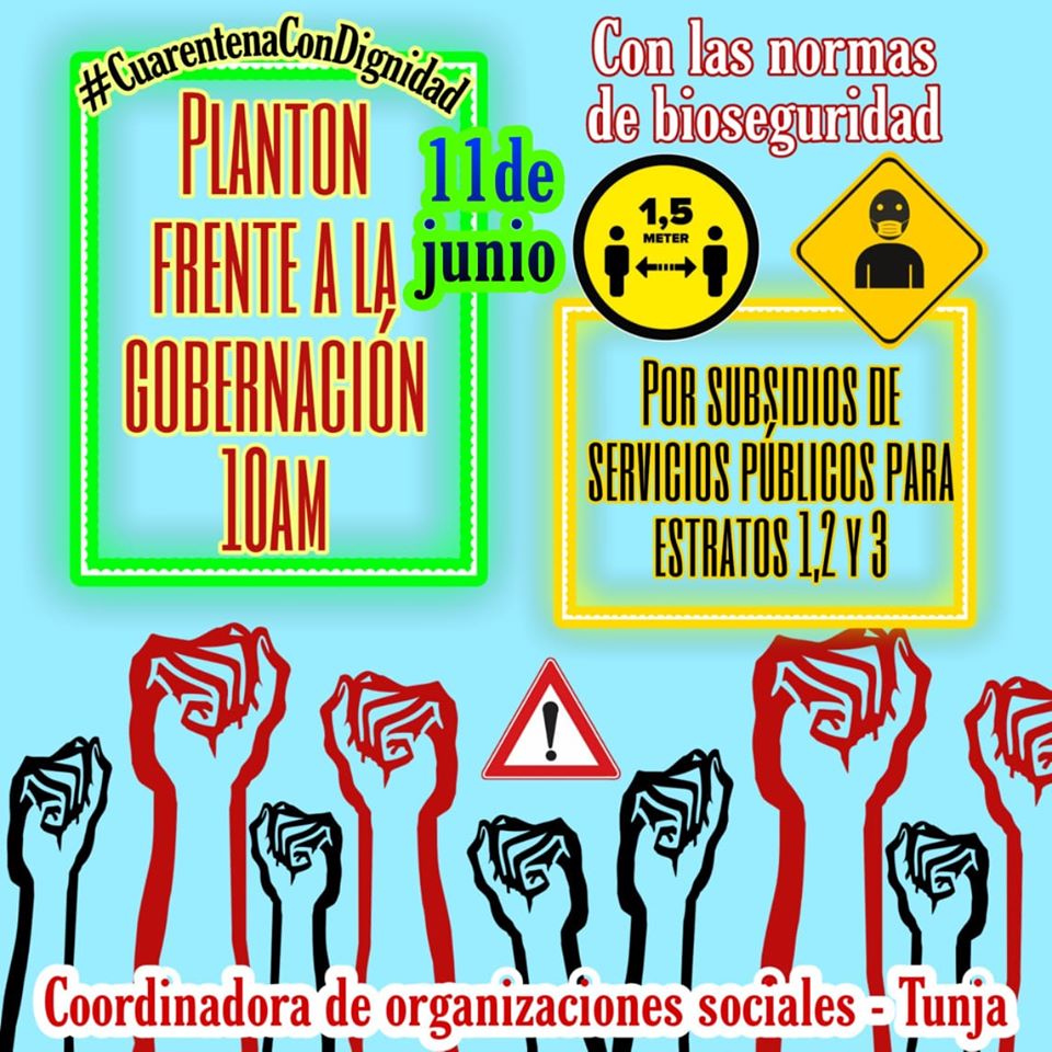 Este jueves 11 de junio a la 10:00 am se llevará a cabo un plantón en varias ciudades del departamento, las manifestaciones se desarrollaran frente a la Gobernación de Boyacá en Tunja y las Alcaldías de Duitama y Sogamoso.