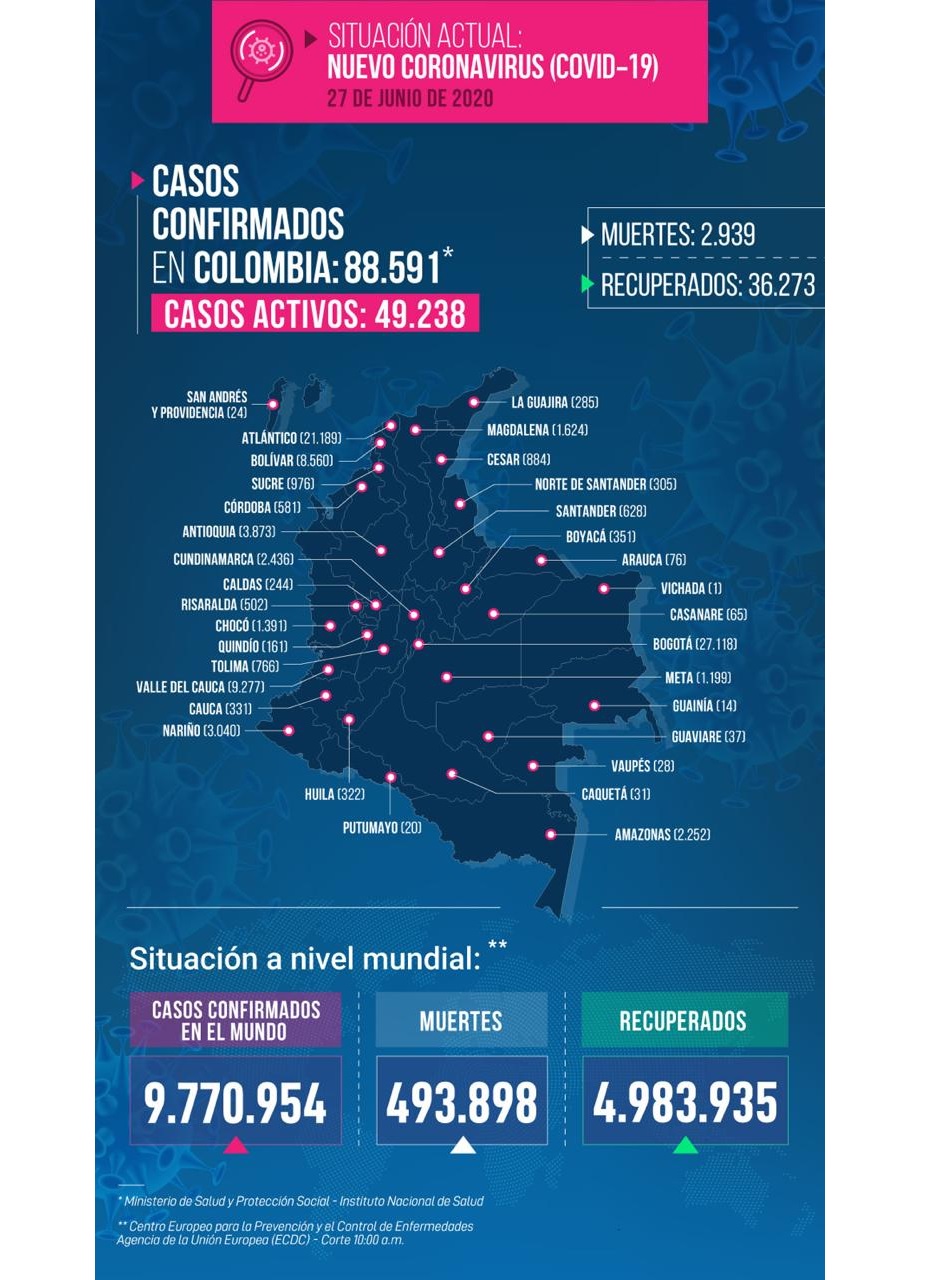 4.149 nuevos casos de Covid 19 hoy en Colombia. Boyacá se reporta con 351 casos totales de contagio