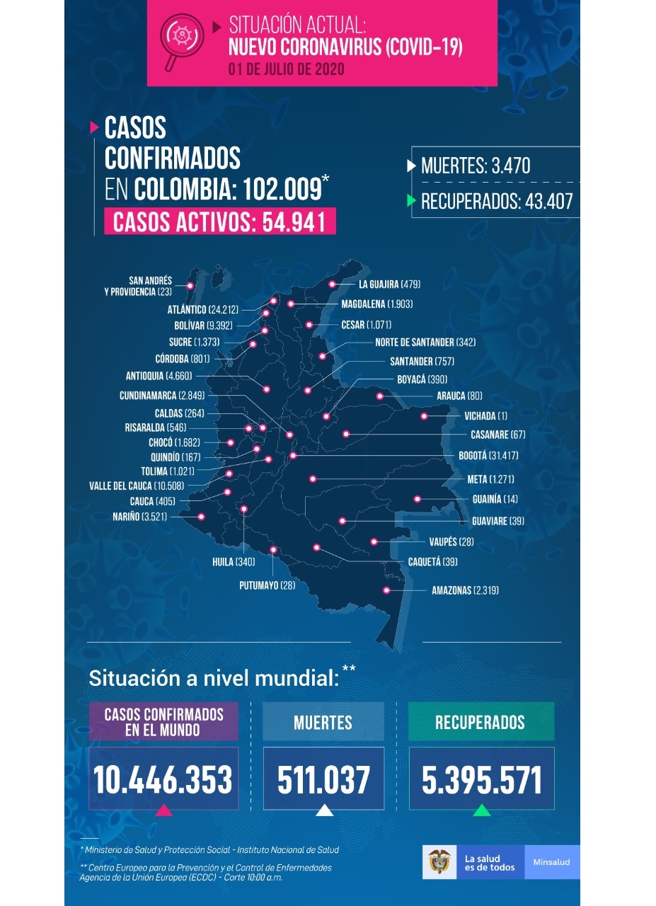 A la fecha, el siguiente es el registro de contagios generales por departamentos y ciudades:
