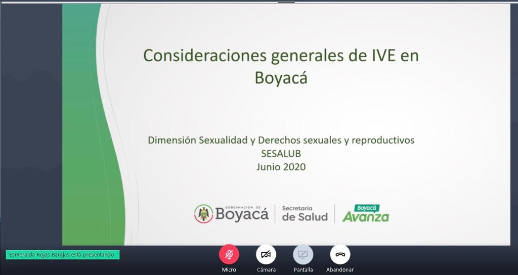 Temas que abordó la primera Mesa Departamental de -IVE-, que a través de conexión virtual se socializó el marco jurídico, incluida la Sentencia de Unificación 096 de 2018 que recoge los estándares de garantía de la -IVE-, la ruta de atención integral en salud (Resolución 3280/18) frente a la orientación y asesoría y los métodos para la IVE disponibles y seguros según nivel de complejidad, así como las estrategias para fortalecer los procesos de formación académica en salud para la implementación de la IVE.