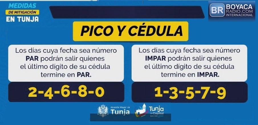 Pico y Cédula vigente hoy en Tunja. Pueden salir personas con último número de cédula impar