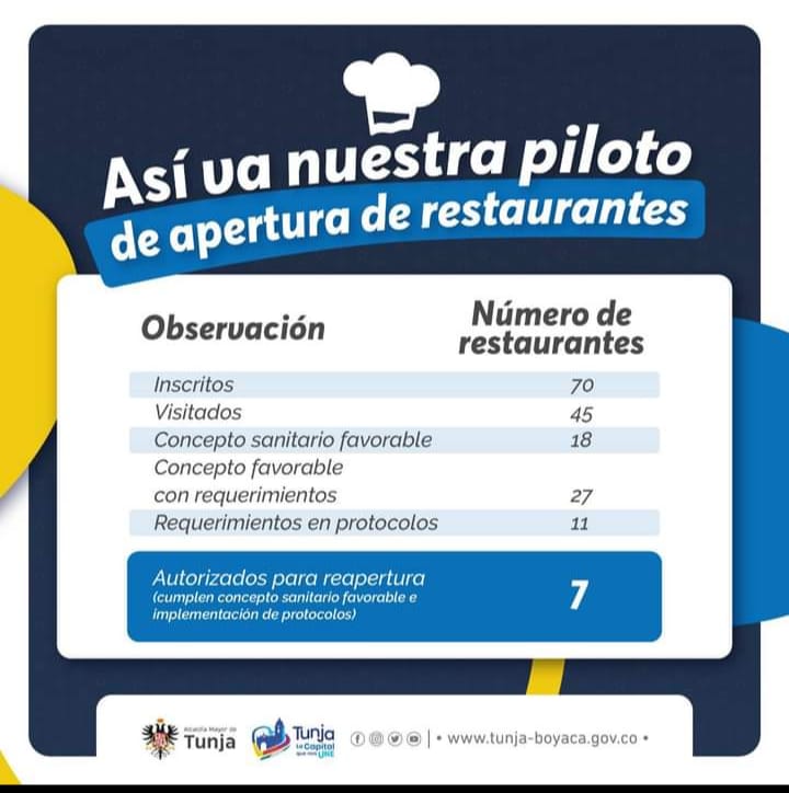 la Alcaldía Mayor de Tunja, a través de la Secretaría de Desarrollo dieron inició al plan piloto para restaurantes, con el fin de lograr la reactivación económica en la ciudad por parte de este importante sector.