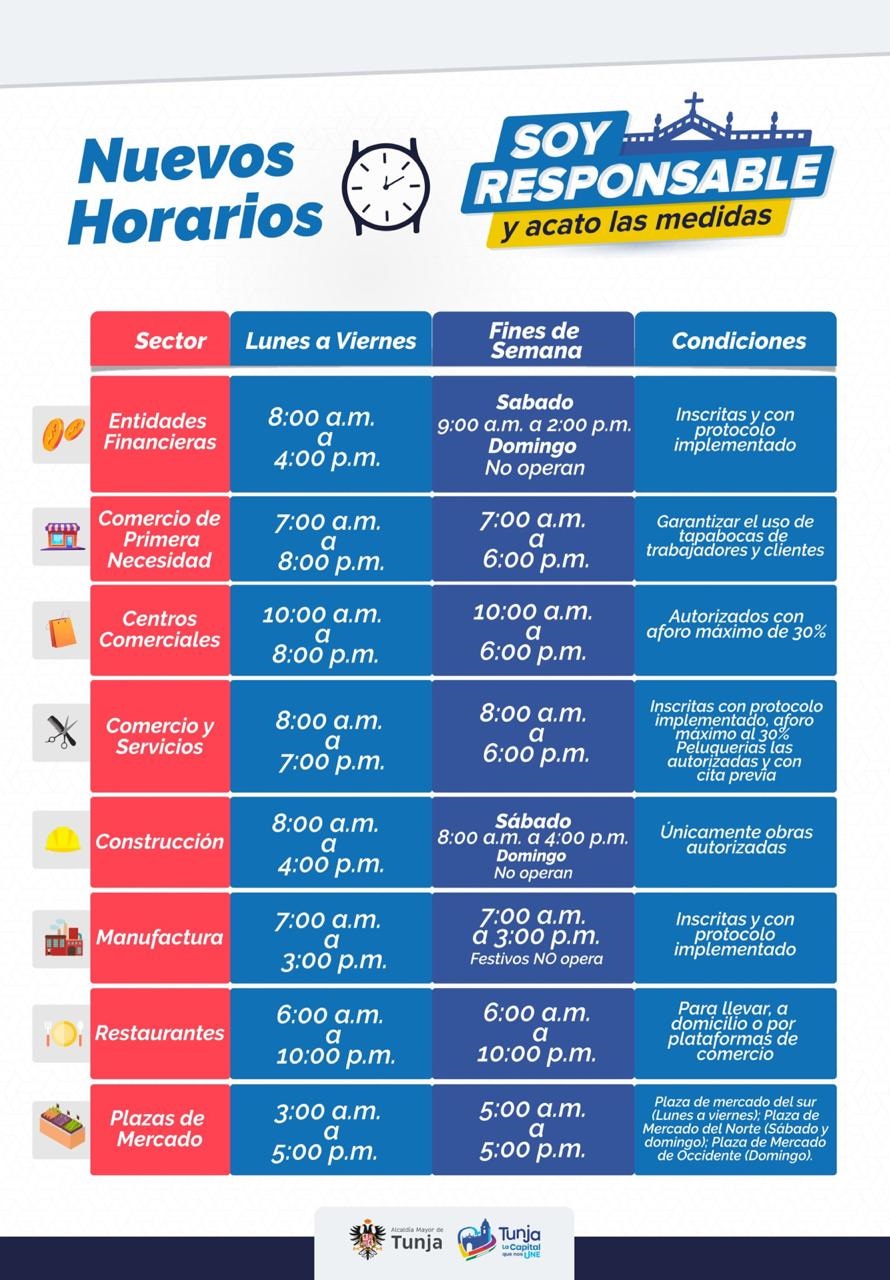 Nuevos horarios en Tunja para entidades financieras y comercio.