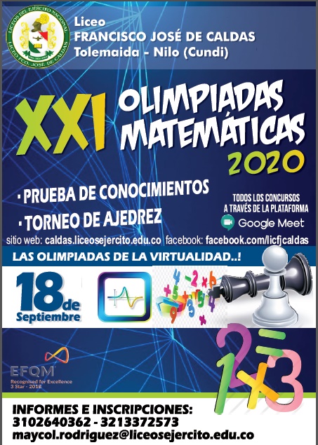 El secretario de Educación de Boyacá, Jaime Raúl Salamanca Torres, promueve la invitación del Liceo Francisco José de Caldas de Tolemaida Nilo – Cundinamarca, para participar en las XXI Olimpiadas de Matemáticas 2020, que incluye pruebas de conocimientos y torneo de ajedrez.
