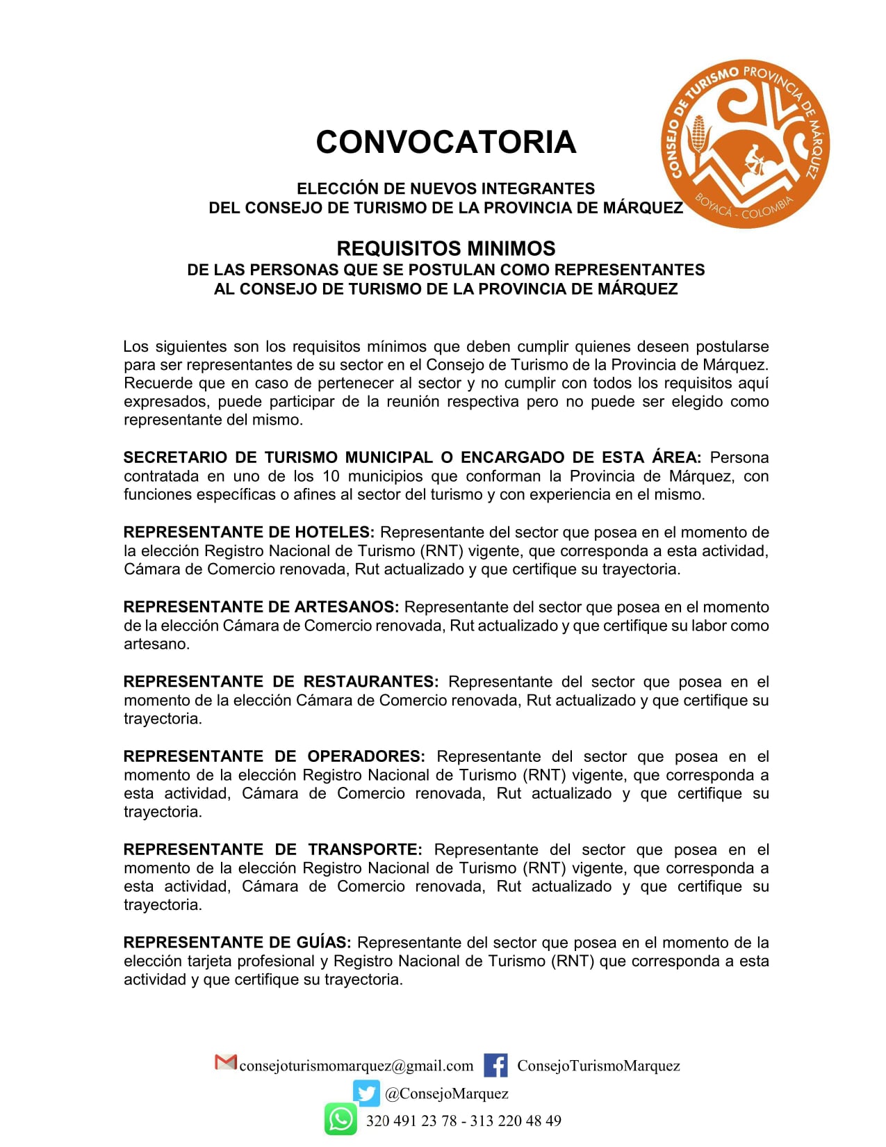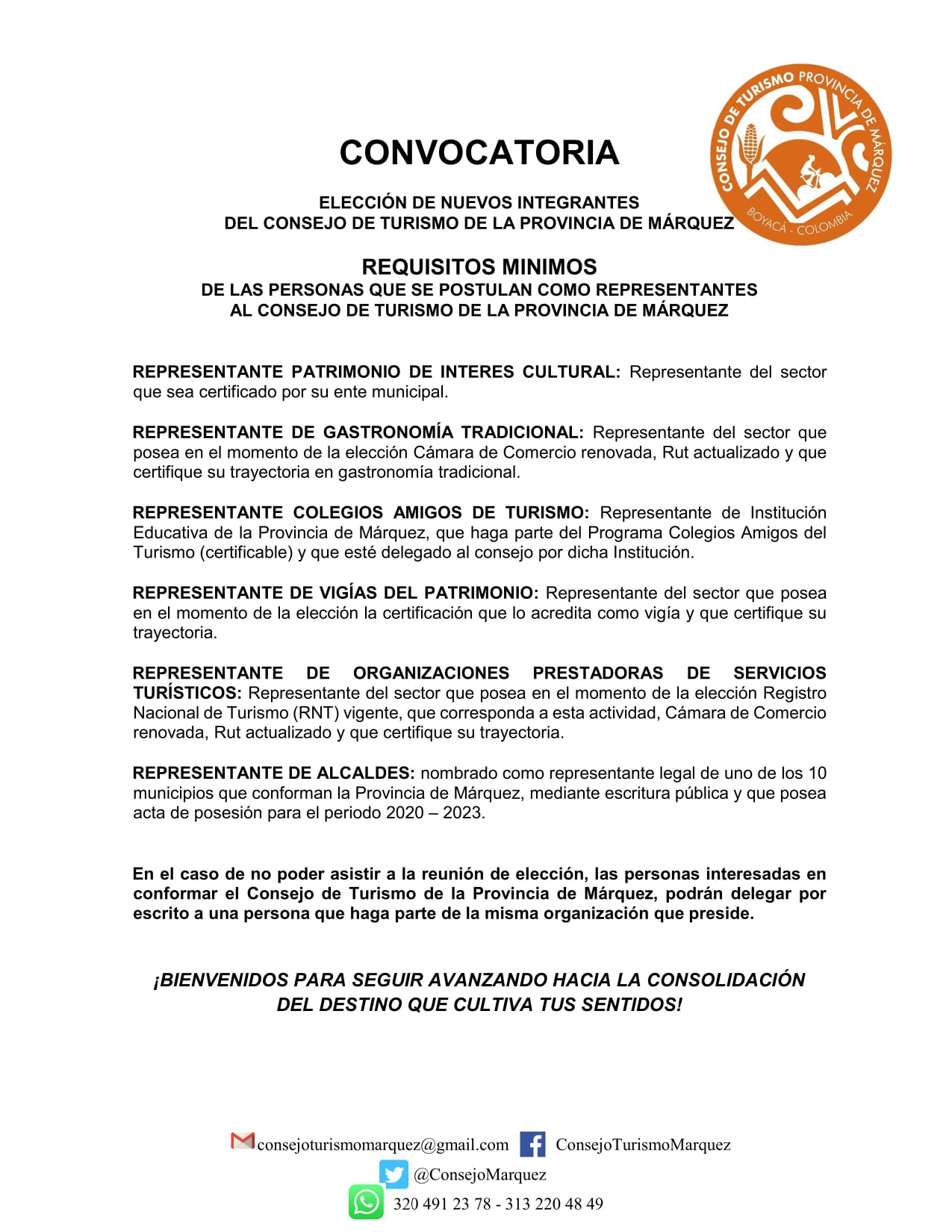 La provincia de Márquez que incluye al municipio de Boyacá, Jenesano Ventaquemada, Viracachá, Turmequé, Nuevo Colón, Tibaná, Úmbita, Ciénega y Ramiriquí; está en busca de nuevos representantes para el Consejo de Turismo Provincial.