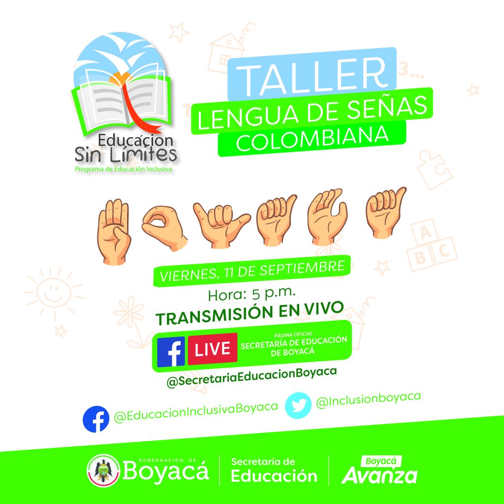 Este próximo viernes 11 de septiembre, a partir de las 5:00 de la tarde, el Programa de Educación Inclusiva de Boyacá continuará con los conversatorios virtuales de educación para la inclusión, en esta ocasión se tratará el tema de Lengua de Señas colombiana, sobres factores básicos de comunicación e identificación de la población sorda.