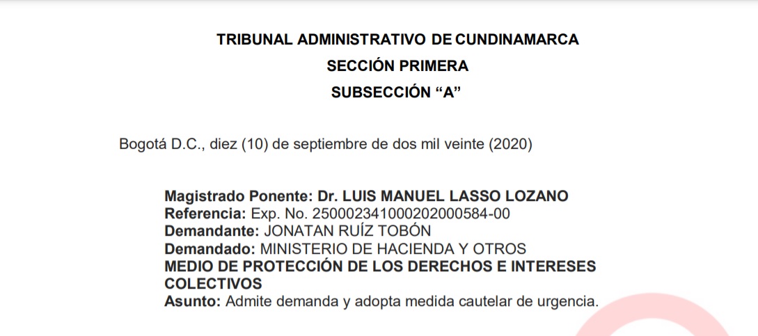 El Tribunal Administrativo de Cundinamarca ordena al Ministerio de Hacienda y Crédito Público de Colombia, suspender préstamo a Avianca