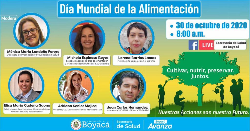 El Comité Técnico interinstitucional de Seguridad Alimentaria y Nutricional de Boyacá – CTISAN, realizará un Foro para celebrar el Día Mundial de la Alimentación, este 30 de octubre, a partir de las 8:00 a.m. por el Facebook Live de la Secretaría de Salud de Boyacá.