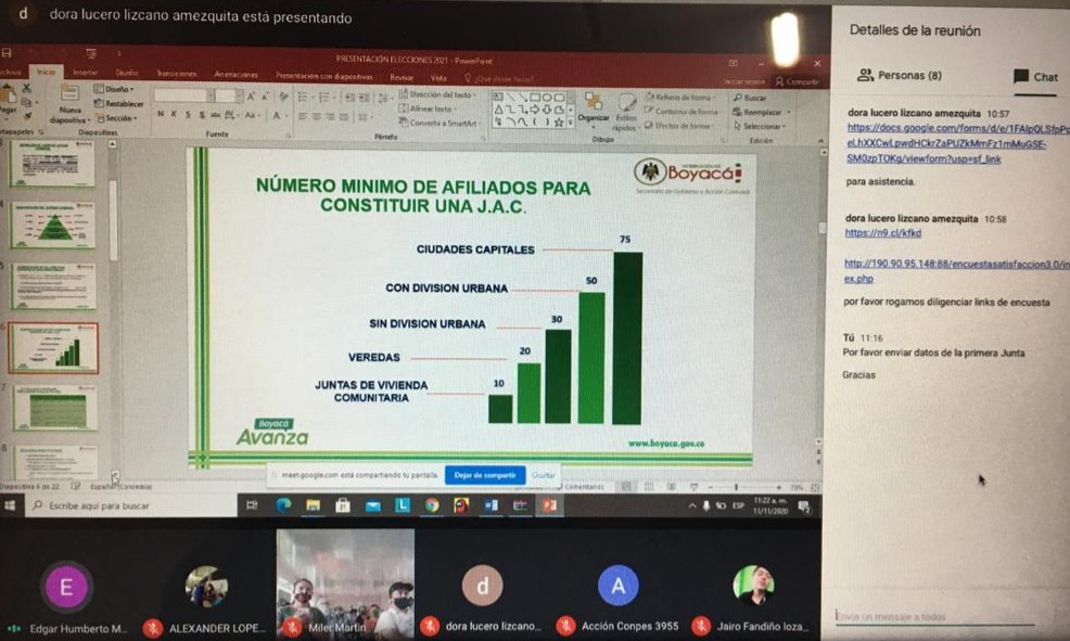 “Estuvimos de manera virtual con comunales del municipio de San Luis de Gaceno en una jornada de legalizatón con todas las juntas de Acción Comunal del municipio, revisando punto por punto su estado, qué les falta para su legalización, entregando documentos y haciendo la inscripción en el Registro Único Comunal – RUC”, indicó Jhon Alexander López Mendoza, director de Participación.