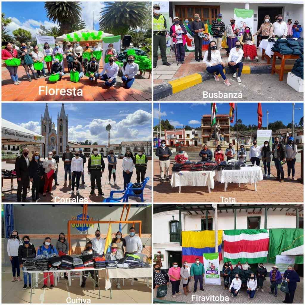 Asimismo, en el municipio de Tota, el alcalde Eriverto Cruz Riaño y su gestora Social, Laidy Cruz recibieron 150 prendas nuevas para mujeres vulnerables, además, a la población que asistió al evento, les fueron entregados tapabocas donados por la Fundación Milpa.