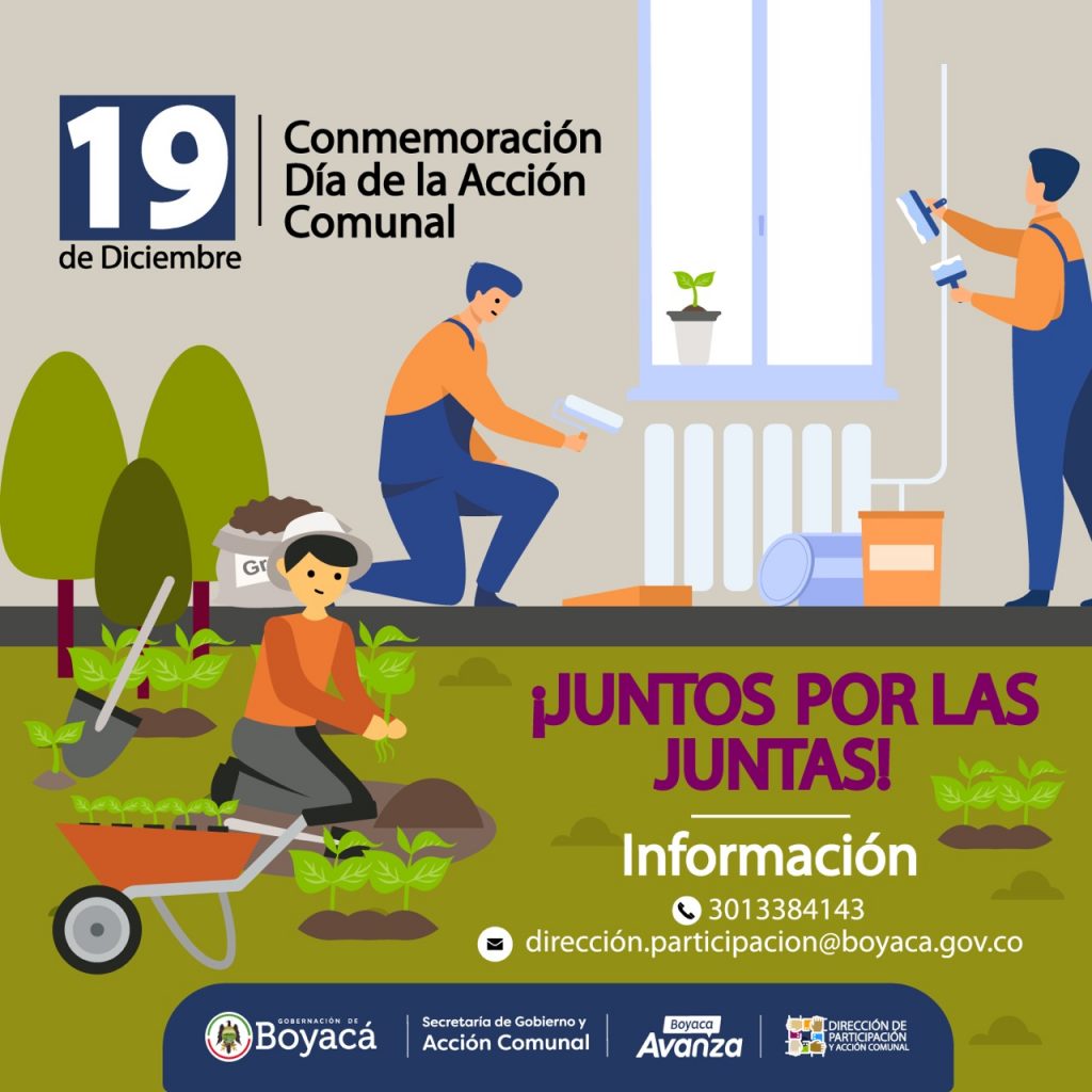 “La invitación es para que este 19 de diciembre hagan un trabajo comunitario en el territorio de donde son dignatarios, deberán enviar sus evidencias en video o fotografías al correo juntosporlasjuntasboyaca@gmail.com que serán subidas al Facebook de Secretaría de Gobierno. El ganador será el que más like o me gusta logren en su publicación”, explicó la Funcionaria.