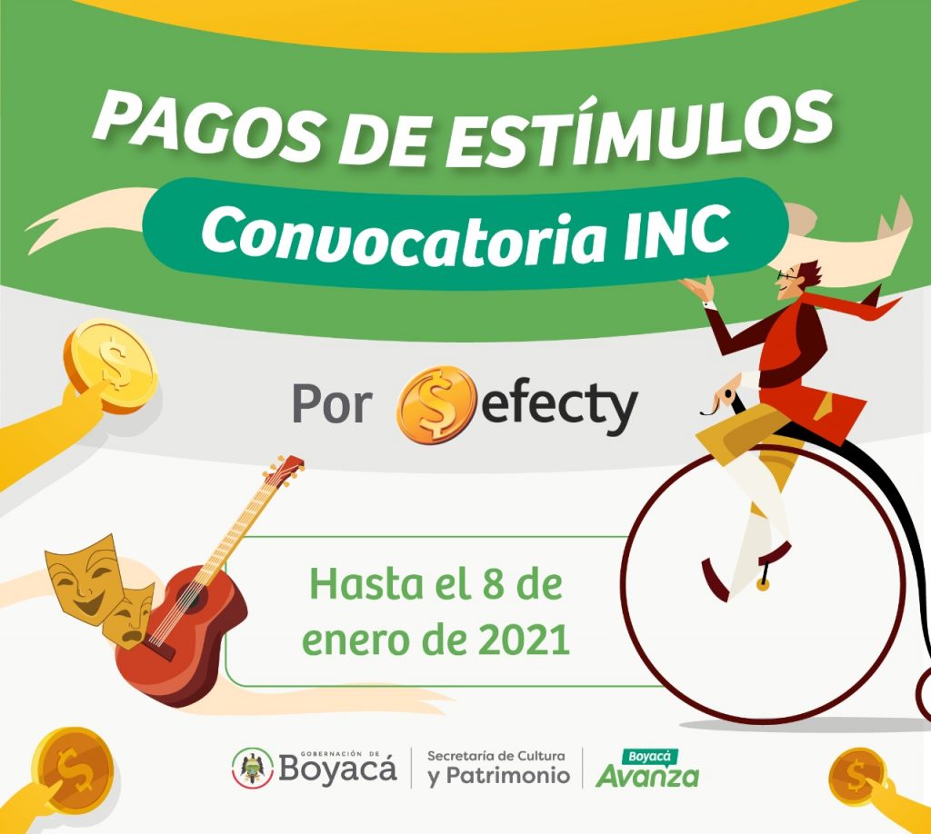 Ahora bien, teniendo en cuenta que para la dispersión de estos recursos se estipularon fechas a efectos de que los beneficiarios pudieran realizar su cobro, no obstante lo cual algunos de ellos no pudieron reclamar la totalidad de los pagos, y en aras de garantizar su desembolso, la Secretaría de Cultura y Patrimonio comunica a todos los beneficiarios que se realizó un último cargue de los incentivos y/o pagos del primer, segundo y tercer giro, que se encuentran disponibles en los puntos autorizados de efecty de cada municipio donde existen beneficiarios y que el término para retirar dicho beneficio finaliza el día 08 de enero de 2021.
