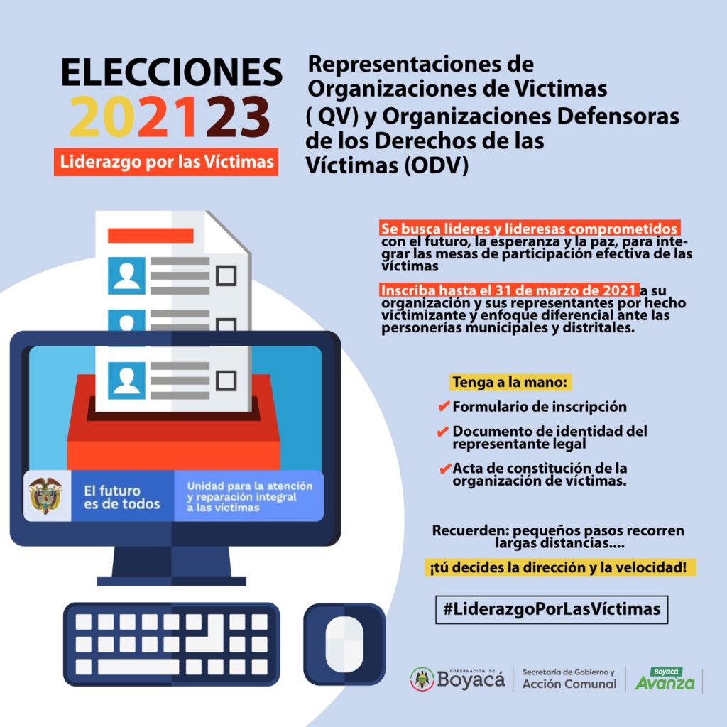 Este año se elegirán los representantes de las víctimas para las mesas municipales, departamentales y a nivel nacional. Las inscripciones cierran este 31 de marzo.