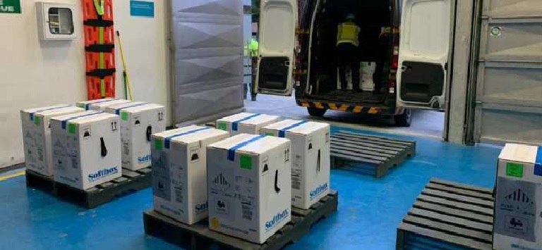 Germán Escobar, jefe de gabinete del Ministerio, indicó que con la llegada de este lote se alcanzan "las primeras 550 mil de las 2.2 millones de dosis proyectadas para este mes de abril", por parte de esta farmacéutica.