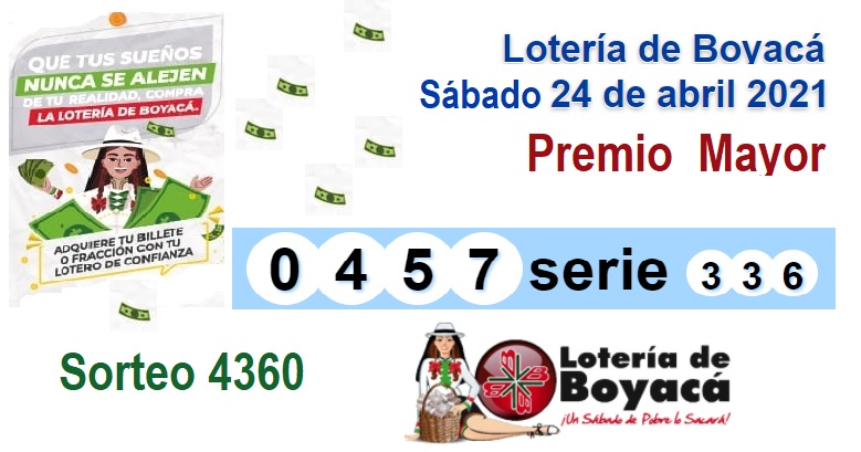 Premio Mayor de la Lotería de Boyacá Número 0457 serie 336