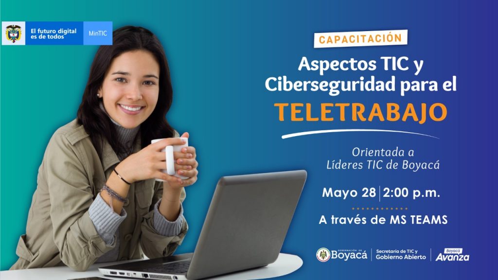 Pero, ¿Cuál es la normatividad y el beneficio que trae implementar esta modalidad laboral? Estas y otras dudas serán despejadas en la capacitación ‘Aspectos TIC y ciberseguridad para el teletrabajo’, dirigida, principalmente, a los líderes TIC de Boyacá. La actividad se adelantará en articulación con el Ministerio de Tecnologías de la Información y Comunicaciones (MinTIC).