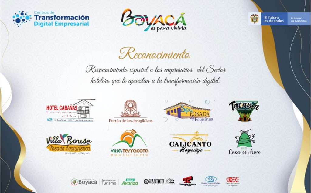 En este sentido, la Secretaría de Turismo Departamental, junto con la Universidad Santo Tomás y las Cámaras de Comercio de Tunja, Duitama y Sogamoso, adelantan un programa piloto de fortalecimiento empresarial para el sector de alojamiento y hospedaje, con un grupo de empresarios que, después de un proceso de convocatoria, selección y formalización, han adelantado actividades como, por ejemplo, diagnóstico de madurez digital, capacitación en competencias digitales y formación consultiva.