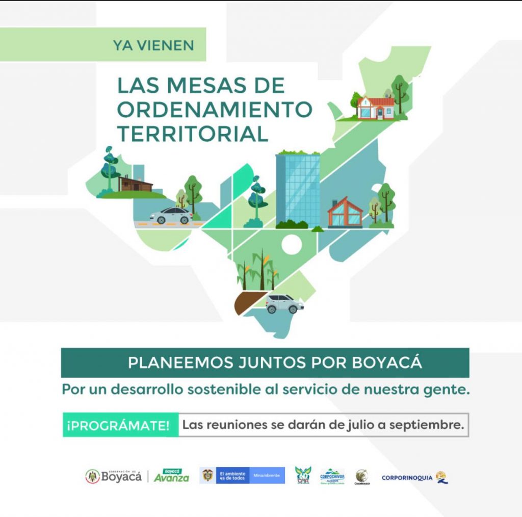 Desde la virtualidad, la Secretaría de Ambiente y Desarrollo Sostenible liderará las mesas de ordenamiento territorial “Planeemos Juntos por Boyacá, por un Desarrollo Sostenible al Servicio de Nuestra Gente”, que se realizarán en el departamento, estas contarán con el apoyo y participación de la Secretaría de Planeación de la Gobernación de Boyacá, el Ministerio de Ambiente y Desarrollo Sostenible, la Procuraduría Regional para Asuntos Ambientales, y de cada una de las corporaciones autónomas regionales con jurisdicción en el departamento de Boyacá, CORPOBOYACÁ, CORPOCHIVOR, CAR Y CORPORINOQUIA.