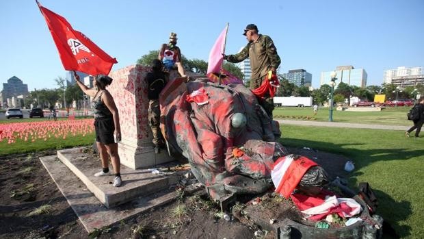 Hoy, los manifestantes derrumbaron la estatua de la Reina Isabel II, y la Reina Victoria de la ciudad de Winnipeg. La acción tuvo lugar el jueves durante el Día de Canadá, cuando tradicionalmente se llevan a cabo celebraciones en todo el país.