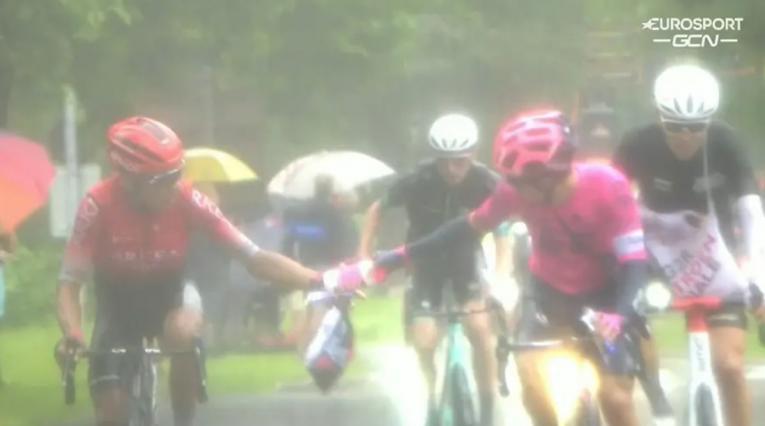 Colaboración colombiana. El detalle de Higuita a @NairoQuinCo en etapa 9 del @LeTour. pic.twitter.com/JLOIua9r1n