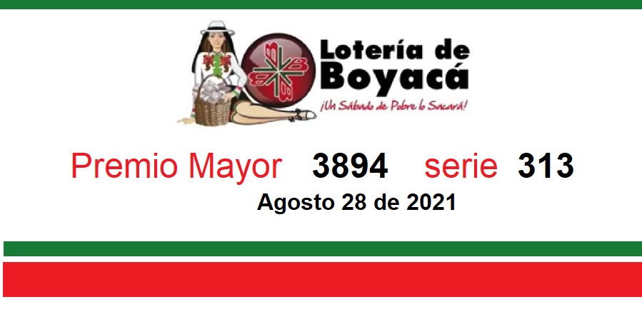 Resultados completos del sorteo de la Lotería de Boyacá realizado el 28 de Agosto de 2021