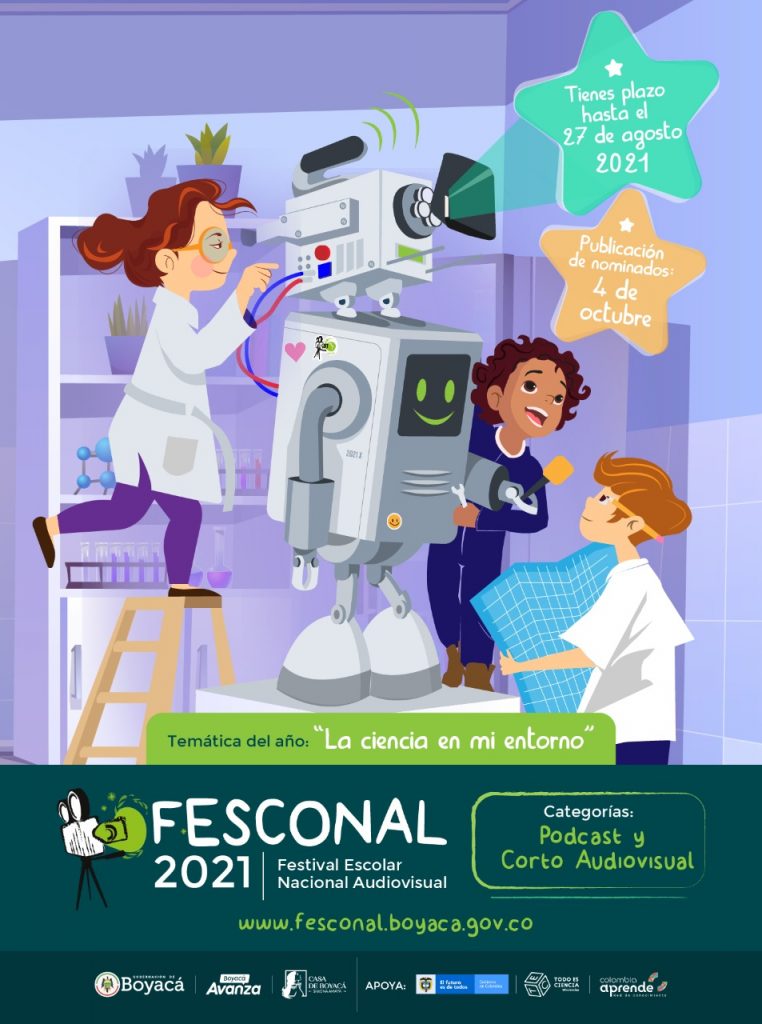 Como se recordará, el Festival Escolar Audiovisual de la Secretaría de Educación de Boyacá se realiza desde el año 2016 y a partir del año 2021 tiene cobertura nacional. Motivo por el cual, este año se llevó a cabo el I Congreso Nacional Escolar Audiovisual durante los días 29 y 30 de abril, evento en el cual se presentó la convocatoria FESCONAL 2021. Luego, se efectuaron desde el 19 de mayo hasta el 11 de agosto ocho talleres de formación audiovisual orientados por los Ministerios de Educación Nacional, Cultura, Ciencia y del Interior. Dichos talleres el Portal Educativo Colombia Aprende los publicó en su base de contenidos educativos disponibles en el siguiente enlace https://www.colombiaaprende.edu.co/contenidos/coleccion/herramientas-para-producciones-audiovisuales-y-sonoras-en-contenidos.
